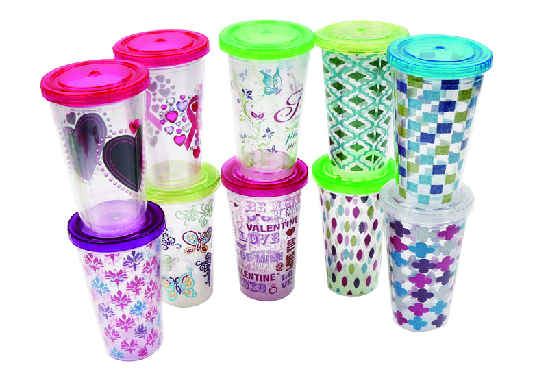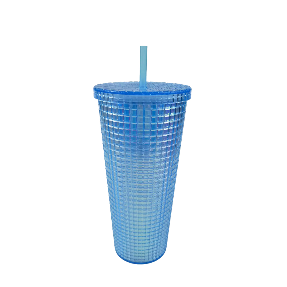Product Name:24 oz. Double-Walled Plastic Tumbler with Squared Motif Texture and Iridescent PVC Insert
